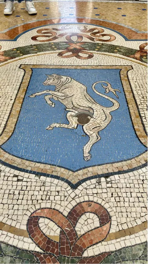 ✅ Fun fact: That bull mosaic? They say it’s worn down from centuries of spins. I added my heel marks to history.