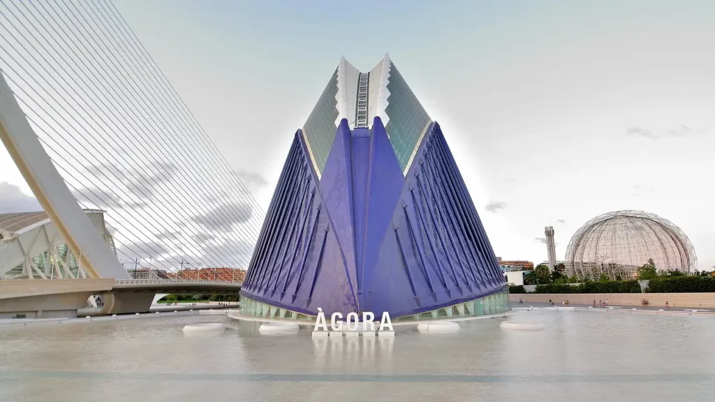The Ágora, Santiago Calatrava’s architectural marvel, now houses CaixaForum Valencia, a vibrant cultural hub within the City of Arts and Sciences.